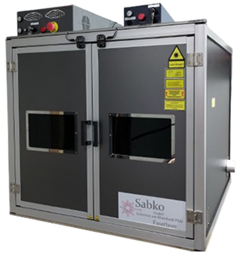 Die hier gezeigte Lasermaschine ist ein Beispiel für eine kundenspezifische Lösung in Laserklasse 1. Sie wurde mit einem Sicherheitskonzept ausgestattet und durch ein Gutachten offiziell als Laserklasse 1 abgenommen-